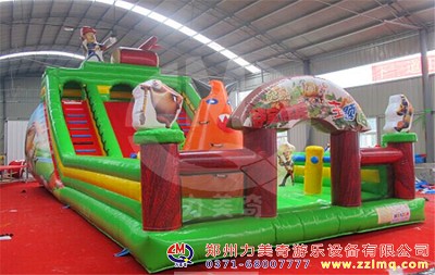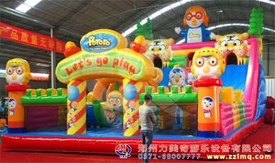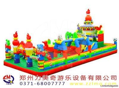 充氣城堡是一種外觀為城堡造型的充氣游樂設(shè)備,使用有著環(huán)保、柔軟的雙網(wǎng)雙面夾網(wǎng)pvc布料制作而成,在密封的情況下用風(fēng)機(jī)不斷供氣來維持產(chǎn)品形狀。提供給兒童游樂。造型根據(jù)市場流行動(dòng)畫片卡通人物設(shè)計(jì),因其可愛、的造型深受小朋友的喜愛。又名為:充氣城堡、兒童城堡、充氣蹦床、充氣大滑梯、兒童樂園、氣墊、淘氣堡等。