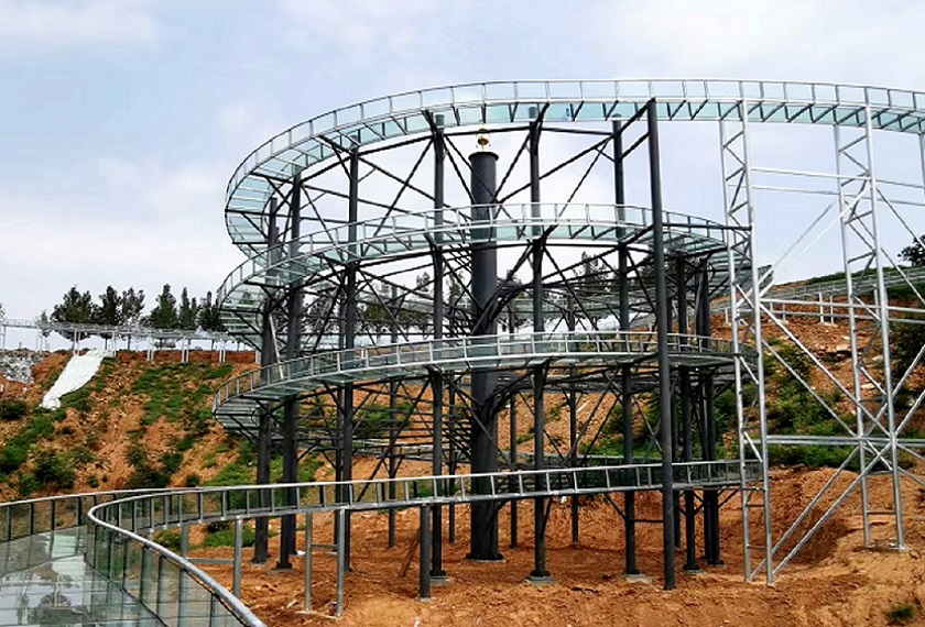玻璃水滑道也就是玻璃漂流,是人工自然漂流的升級(jí)產(chǎn)品,其結(jié)構(gòu)是混凝土基礎(chǔ)、高空鋼結(jié)構(gòu)和特制鋼化透明玻璃組成。玻璃水滑道很大的升級(jí)亮點(diǎn)就是,可以在水資源缺乏的地區(qū)修建,利用玻璃水滑道設(shè)備的水循環(huán)系統(tǒng),可以的實(shí)現(xiàn)漂流效果。而且比自然漂流更加刺激,更加美觀,此外利用自身高空優(yōu)勢(shì),可以一覽景區(qū)美麗風(fēng)景。