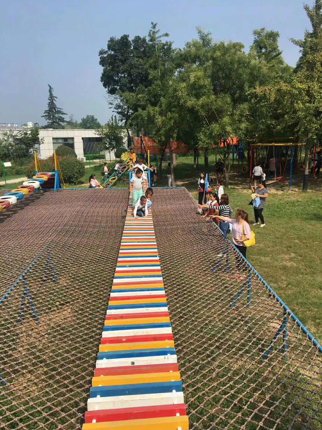 網(wǎng)紅橋就是由鐵索拉繩和樹木橋面組合成的一個吊橋。游玩的人可以站在橋面上左右搖擺。參與“網(wǎng)紅橋”游戲的玩法非常簡單:許多人站在橋上向左或者向右用力,使橋隨著大家用力的方向左右搖擺,為了不跌落到橋下面的水坑中需要用盡辦法在橋上保持平衡。然“網(wǎng)紅橋”的玩法簡單,但是許多人都玩得不亦樂乎,或許很簡單、很真實的才很有味;就連觀眾都看得津津有味,或許是被落水者引得哈哈大笑,或許是對成功者的羨慕。網(wǎng)紅橋游樂設(shè)備在2019年非常火爆,基本上大型景區(qū)和水上樂園都會有網(wǎng)紅橋的存在。