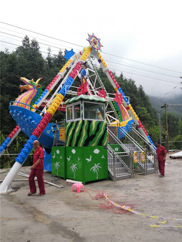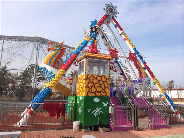24座海盜船游樂設(shè)施因其外形酷似古時海盜船,有時刻準(zhǔn)備戰(zhàn)斗的海盜船長,有眺望遠(yuǎn)方的水手,故得此名。是一款水平軸反復(fù)擺動類的經(jīng)典游樂設(shè)備,海盜船啟動后從緩慢擺動慢慢的急速擺動,游客乘坐于海盜船之上,隨著由緩至急的反復(fù)擺動,猶如置身驚濤駭浪的大海之中,時而沖上浪峰,時而跌入谷底,驚險刺激,挑戰(zhàn)人們心理承受能力的極限,有趣刺激,精美的外觀,深受游客的喜愛。