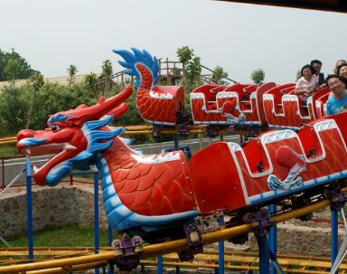 “滑行龍”游藝機(jī)以龍尾造型,整個列車由前后兩個傳動部驅(qū)動,沿著兩個螺旋形軌道行駛,時而盤旋而上,時而急速下降,既有娛樂性、趣味性,又具有刺激性,老幼皆宜。乘坐過程中給游客帶來新奇、快樂的感覺。典雅的龍造型和具有民族特色的裝飾,更增添游人的興致,是一種深受群眾喜愛的游藝機(jī)。