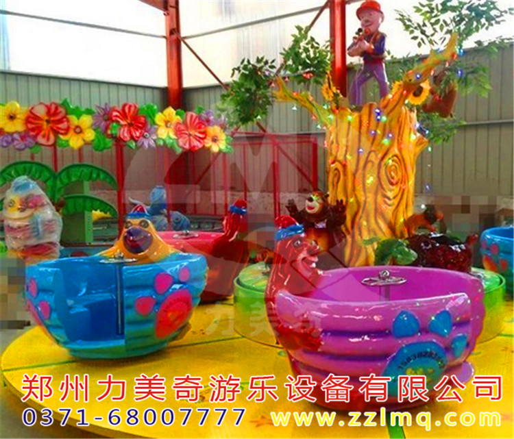 熊出沒是旋轉(zhuǎn)咖啡杯游藝機(jī)的一種,造型精美可愛,深受小朋友的喜愛。“咖啡杯”是一款旋轉(zhuǎn)類游樂設(shè)備。乘客可以自由隨著設(shè)備的節(jié)奏轉(zhuǎn)動,也可以自己把握轉(zhuǎn)動方向.乘客乘坐過程中轉(zhuǎn)動出一種溫暖的感覺,轉(zhuǎn)動中體驗快樂。