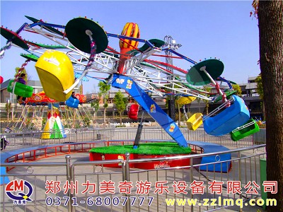 雙人飛天造型新穎,氣勢雄偉,壯觀,融驚險性與趣味性為一體。游人在懸掛的座椅中隨著轉(zhuǎn)盤傾斜回轉(zhuǎn)轉(zhuǎn)動,飛上旋下,好不驚險的刺激,親自一試方能體驗(yàn)它的無窮樂趣。同時,它又鍛煉和培養(yǎng)青少年勇敢頑強(qiáng)的精神的工具,是娛樂和科學(xué)的有機(jī)結(jié)合,適合各種游樂場,公園等娛樂場所使用,深受廣大游客的喜歡和歡迎!