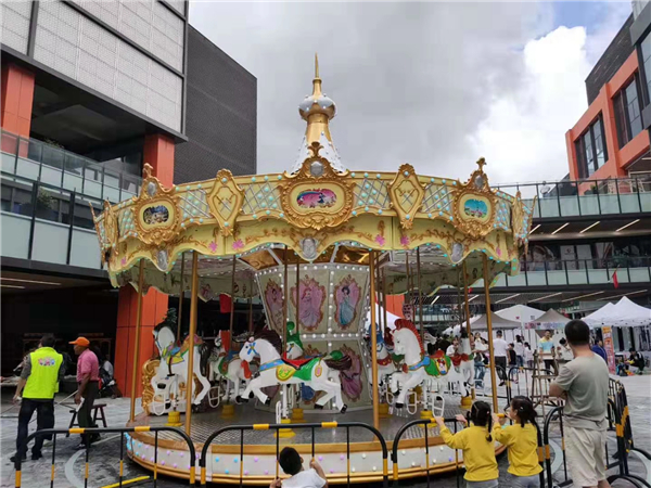 旋轉(zhuǎn)木馬或回轉(zhuǎn)木馬游樂場機動游戲的一種,即旋轉(zhuǎn)大平臺上有裝飾成木馬且上下移動的座位供游客乘坐。記錄的旋轉(zhuǎn)木馬出現(xiàn)于拜占庭帝國時期。約1860年歐洲出現(xiàn)一個以蒸汽推動的旋轉(zhuǎn)木馬。旋轉(zhuǎn)木馬成為每個大人孩子心中的童話世界不可缺少的裝飾,如今在各大小游戲場、商場等地方皆有各式旋轉(zhuǎn)木馬。